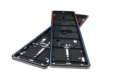 O suporte de matrículas Mono Black é um conjunto de duas bases de matrícula, uma para a frente e outra para a traseira do seu veículo. Inclui um pack de 8 parafusos.
